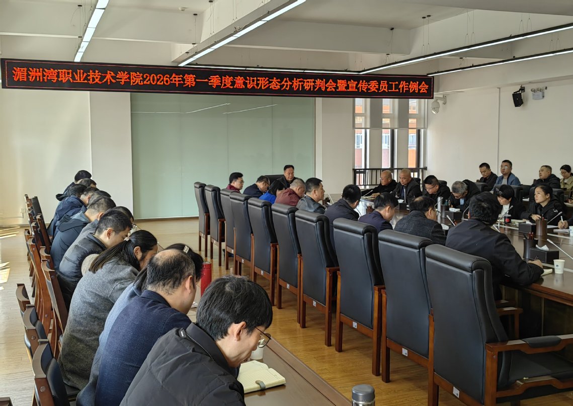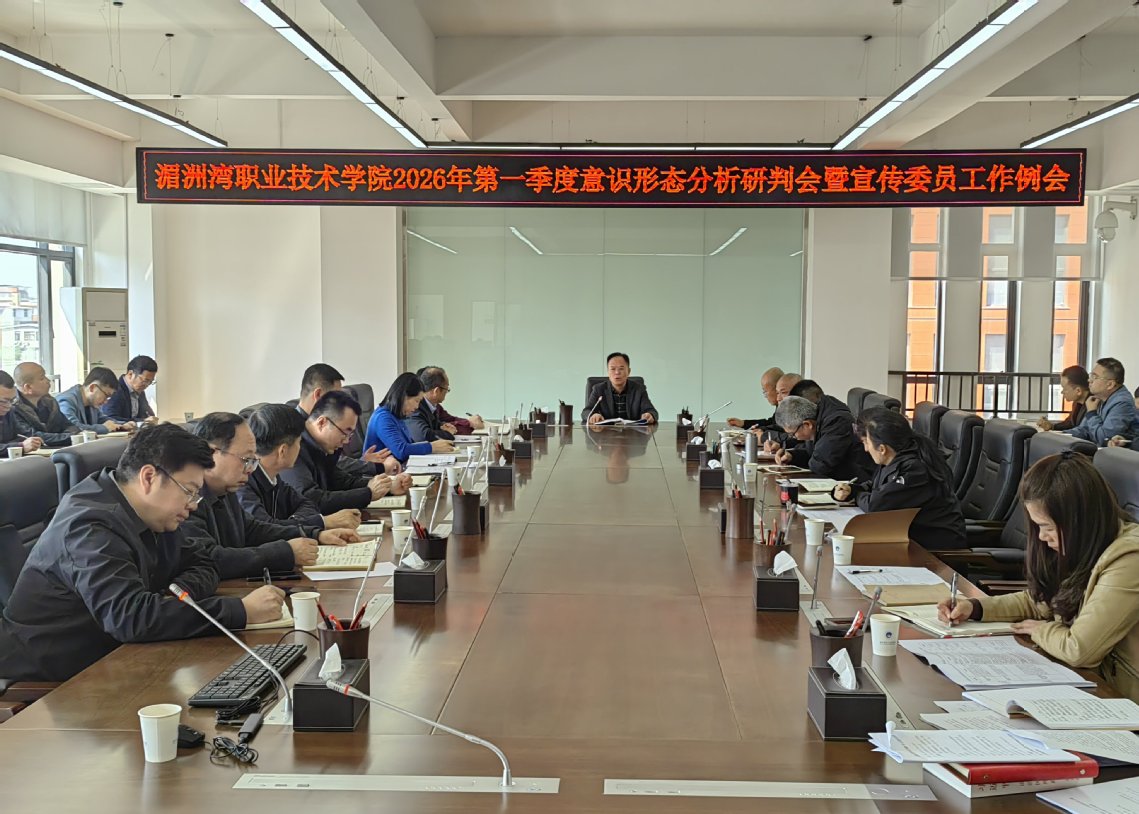3月12日,湄洲湾职业技术学院2026年第一季度意识形态领域分析研判会暨宣传委员工作例会举行。学院党委副书记林新钊出席并讲话。机关党总支书记、各机关部门党支部书记、各系院党总支书记、三所中专校负责人,机关各党支部宣传委员、各院系党总支宣传委员,宣传部全体人员等参加。