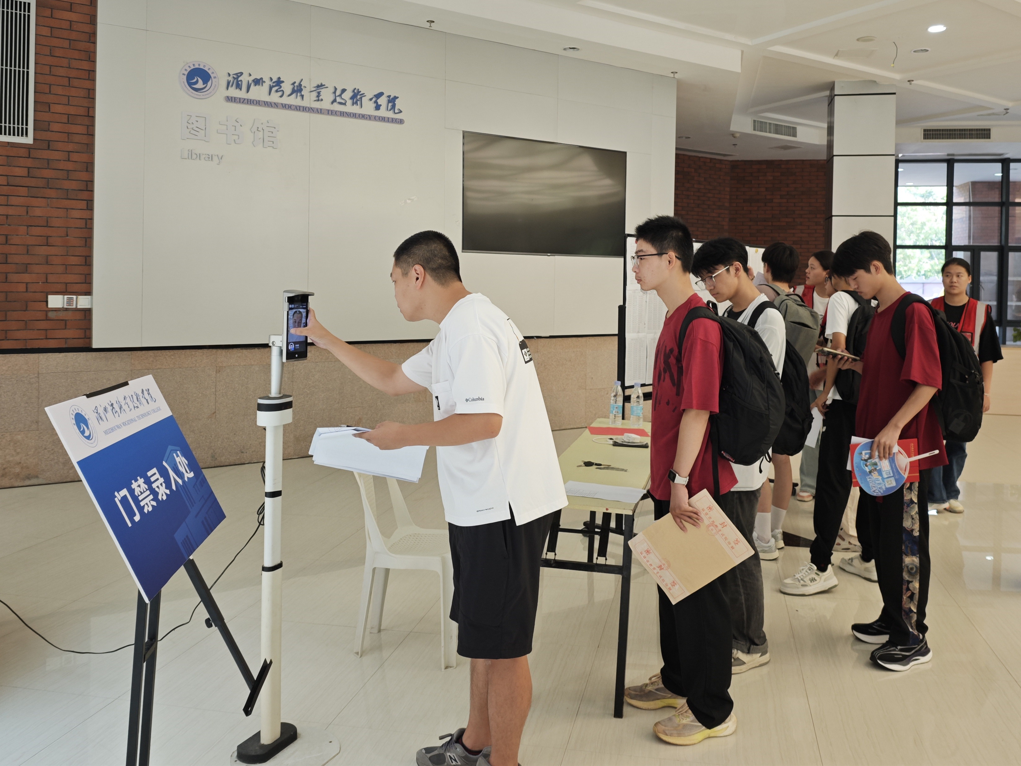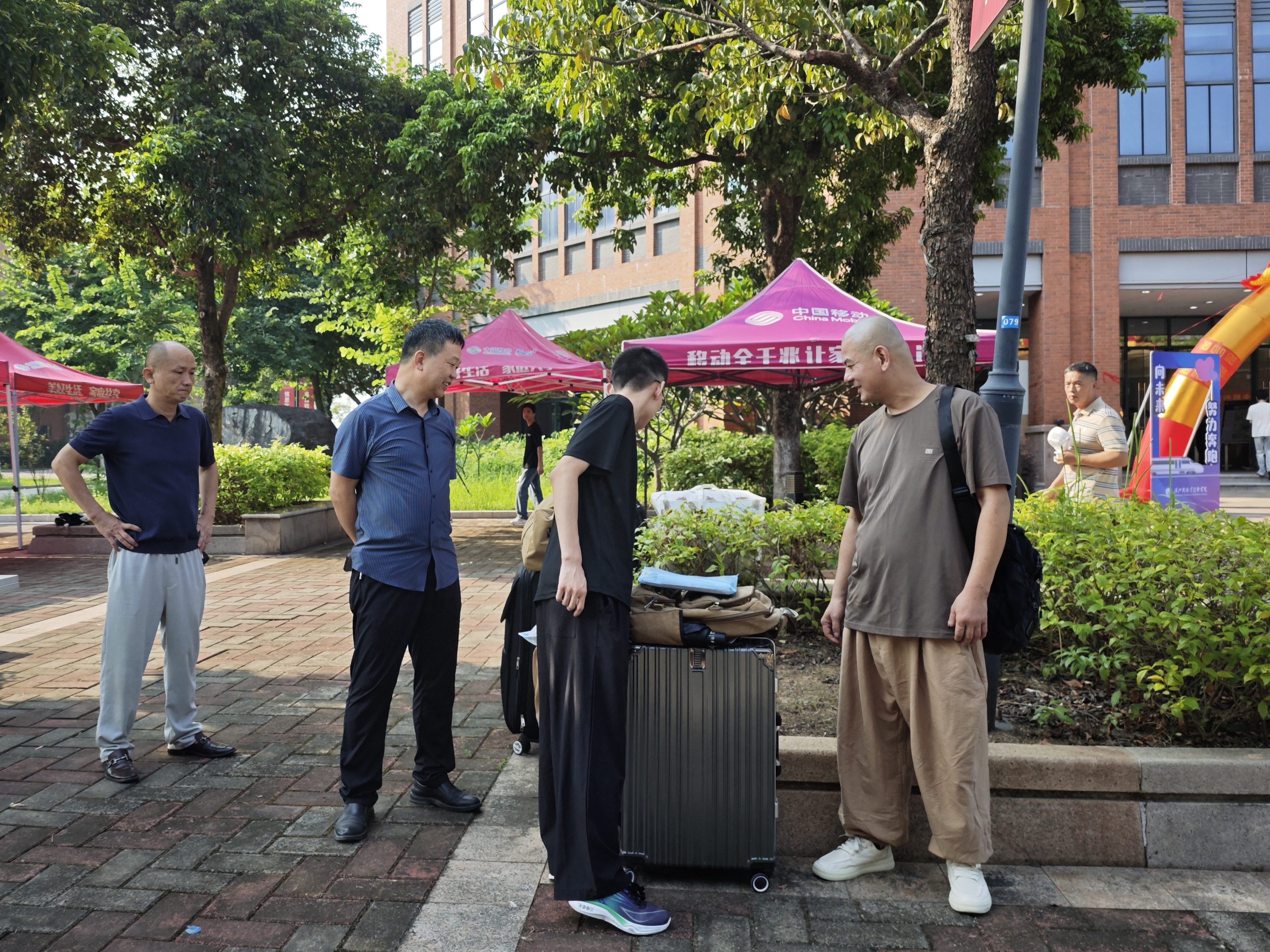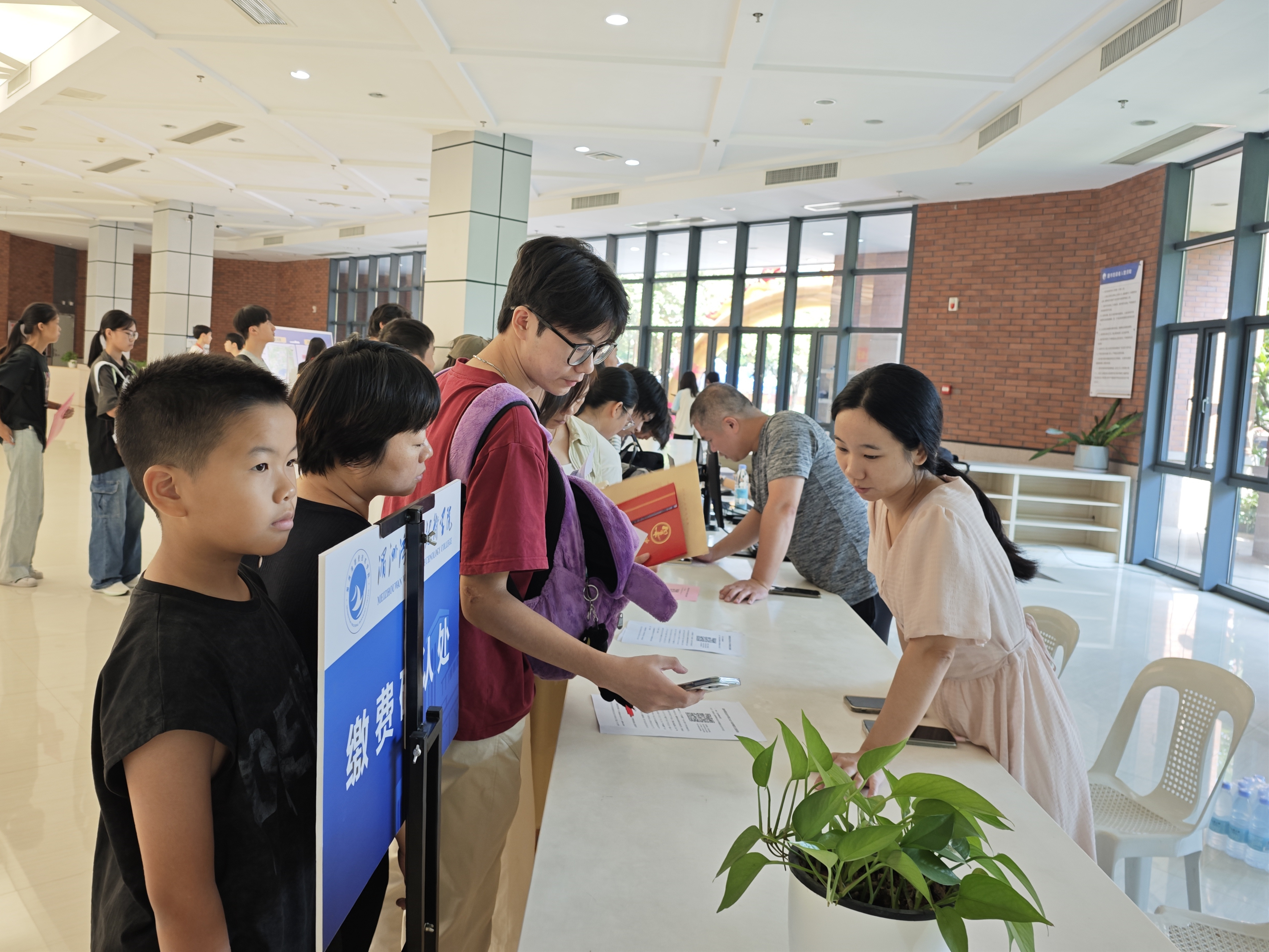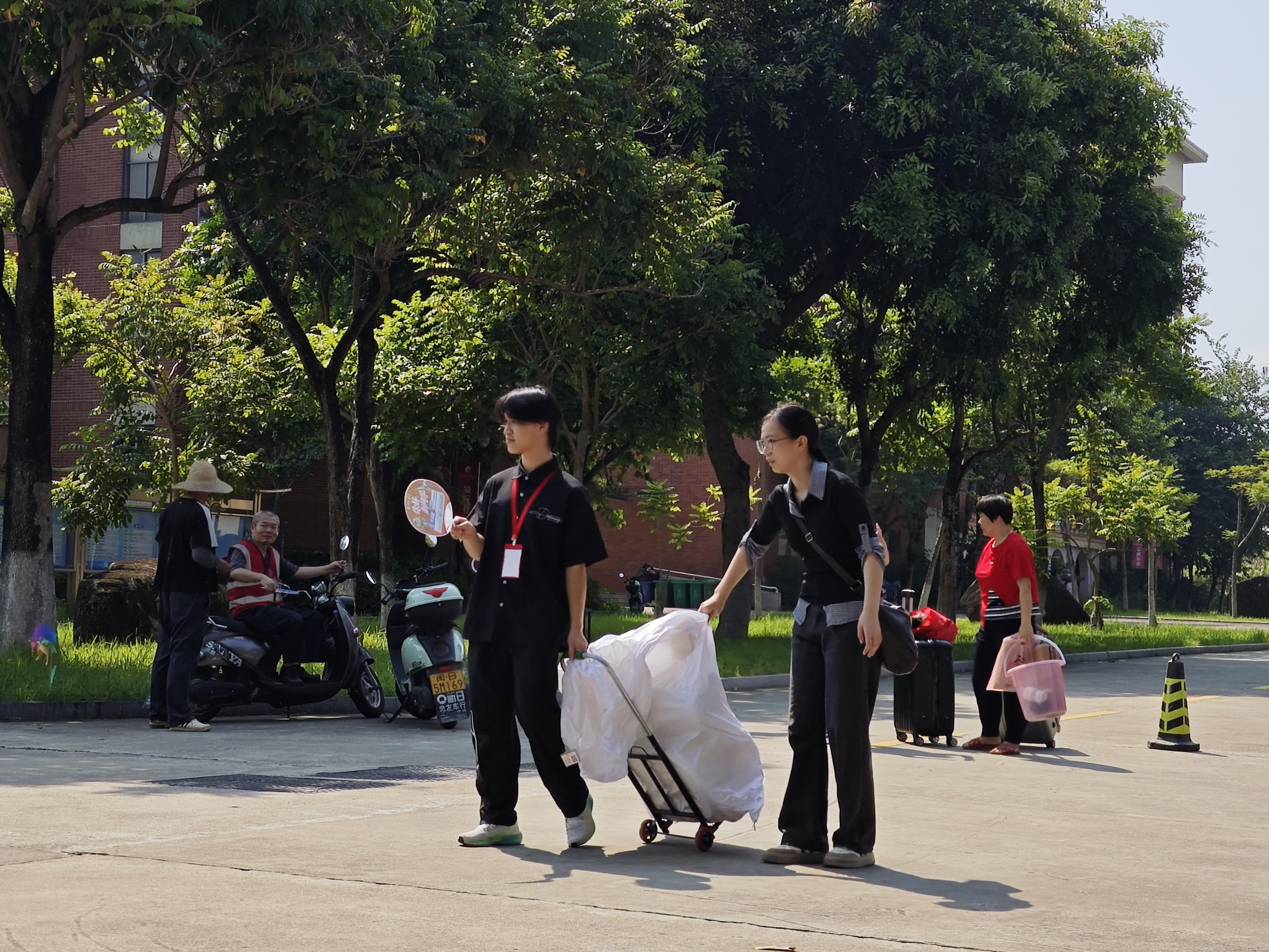“同学,跟我来,往这走”,校园里,处处可以看见志愿者们忙碌的身影,他们主动接过新生手中的行李,耐心引导,配合现场工作人员完成入学报到,为新生们保驾护航。