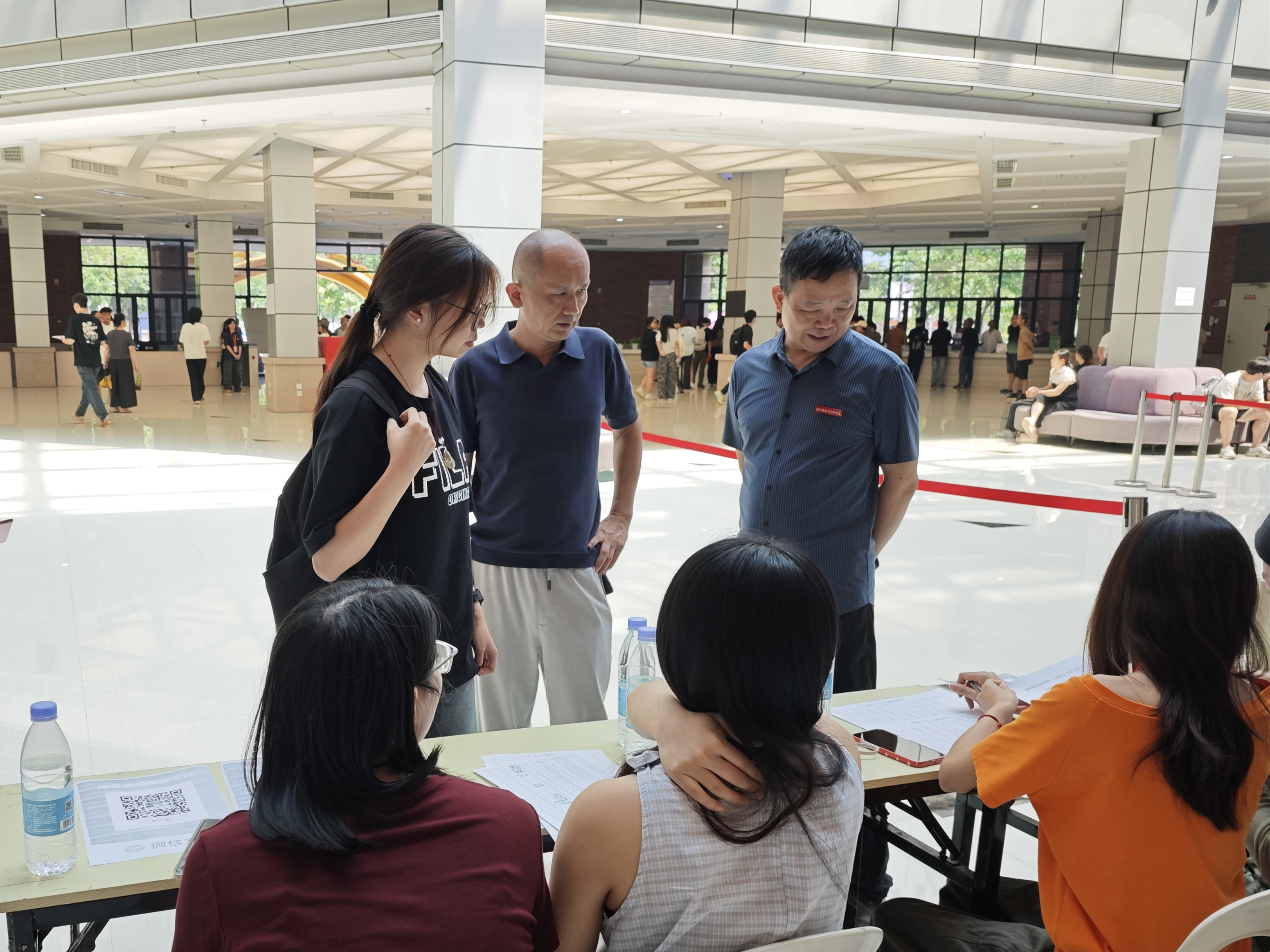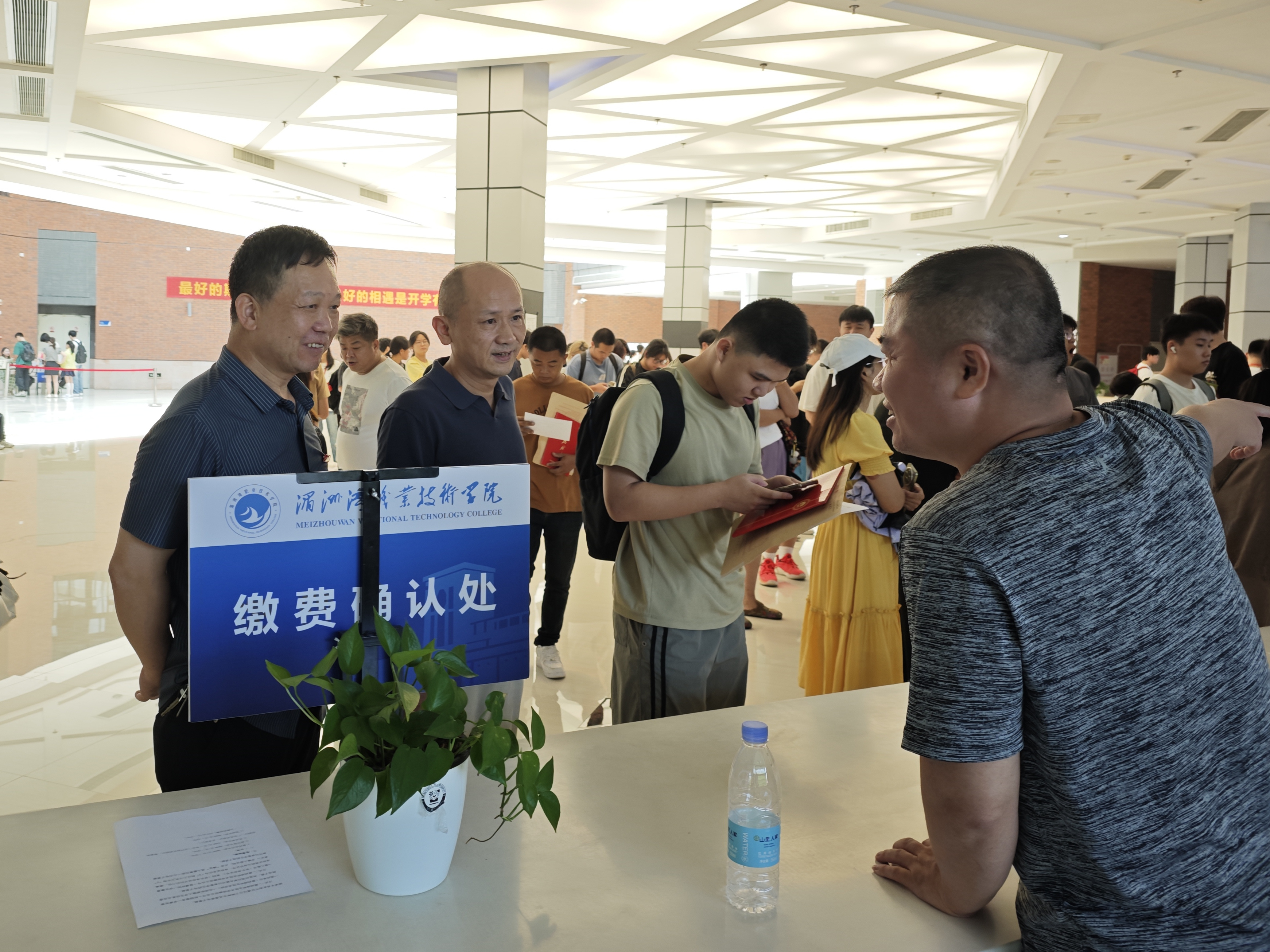 迎新现场,湄洲湾职业技术学院(仙游校区)院长谢金达,党总支书记林黄耀,副院长张力学、刘建华及党总支副书记李硕深入迎新一线,了解新生报到情况,检查迎新服务保障工作,并慰问现场工作人员、志愿者、2025级新生及新生家长。