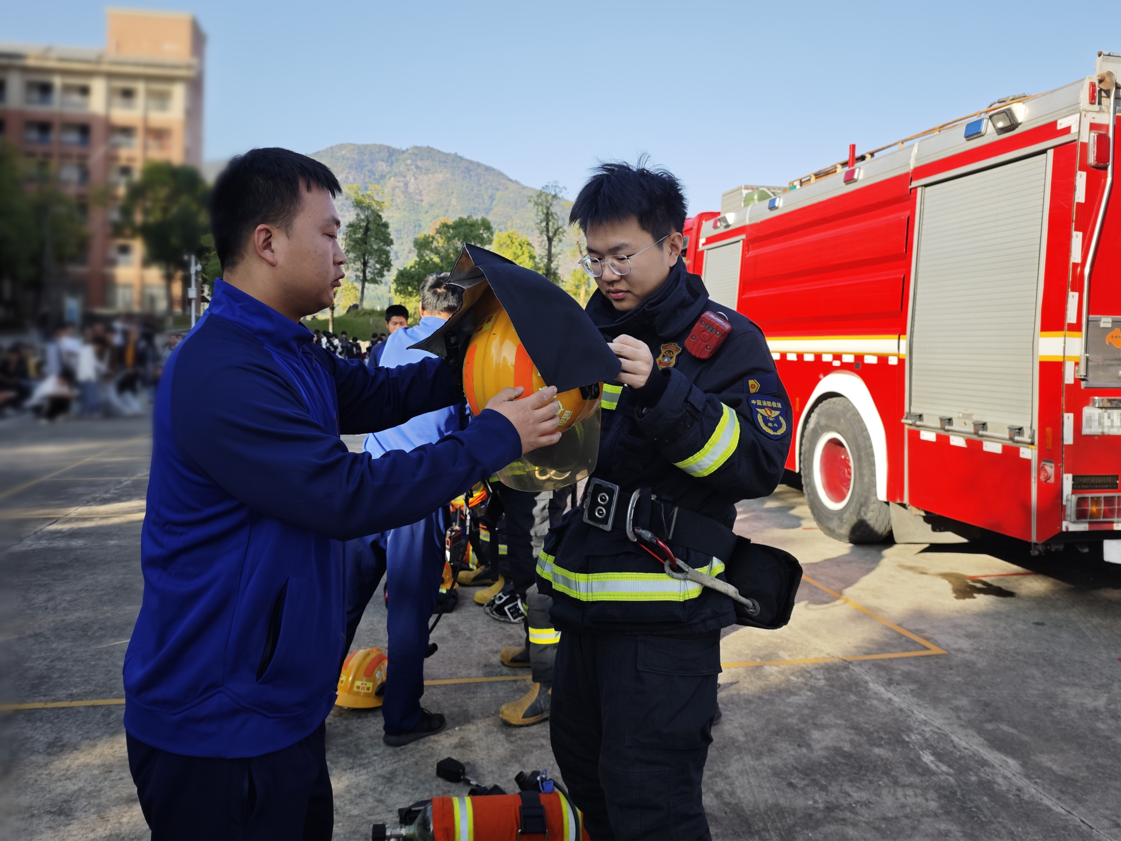为切实增强全体师生消防安全意识和应急逃生自救能力,紧扣第34个全国消防日“全民消防、生命至上——安全用火用电”主题,11月25日下午,湄洲湾职业技术学院仙游校区组织开展消防应急疏散演练,全体在校师生参加,仙游消防大队全程指导并带来沉浸式消防实操体验。