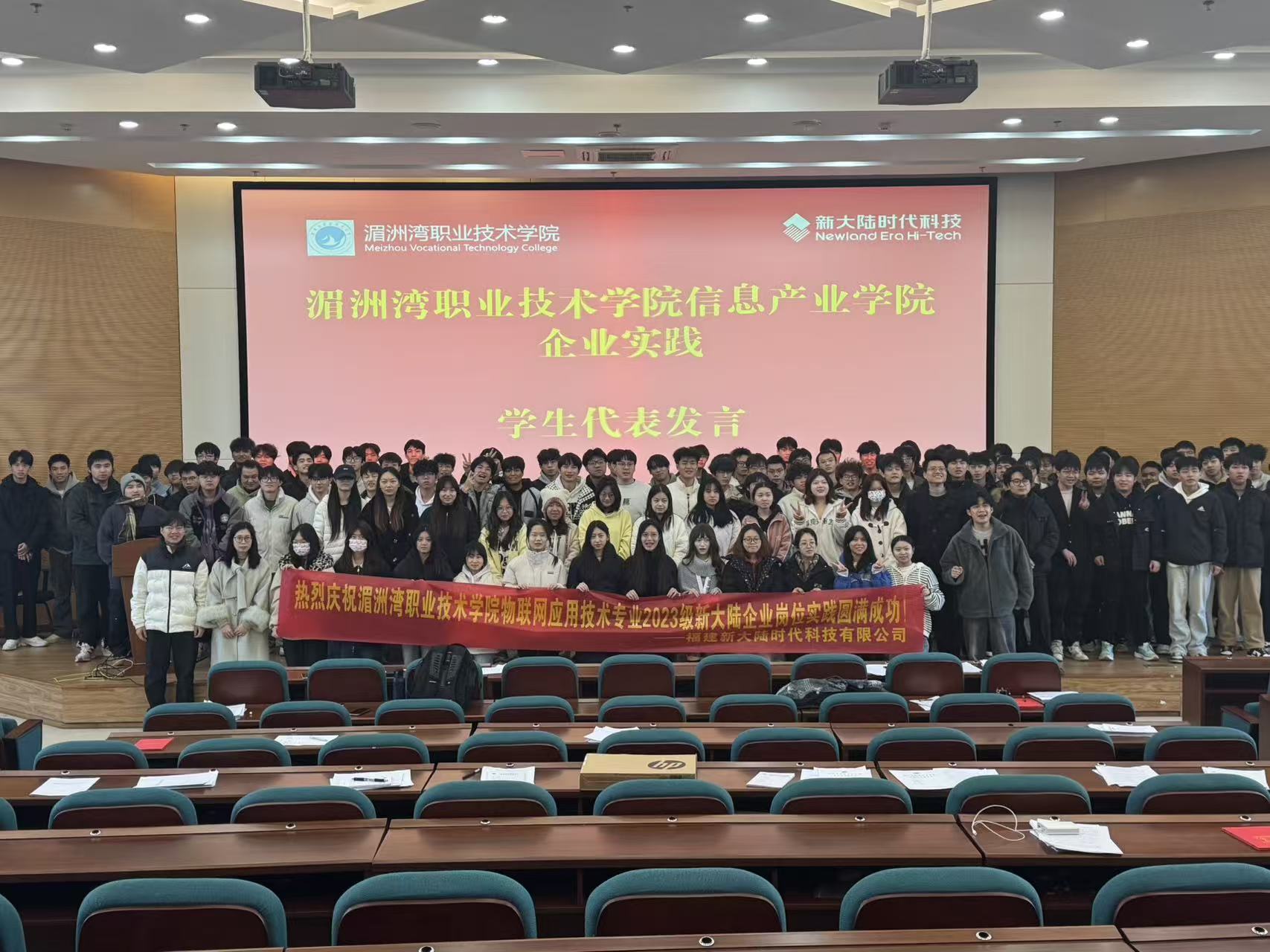 近期,湄洲湾职业技术学院信息产业学院2023级学生项目实训闭营大会在图书馆报告厅举行。创世环宇(厦门)网络有限公司、北京软通动力教育科技有限公司、福建新大陆时代科技有限公司、福建省网龙普天教育科技有限公司等合作企业代表、学院教师代表与2023级计算机应用技术、大数据技术、软件技术、动漫制作技术及物联网应用技术专业全体学生齐聚一堂,共同见证实训成果。