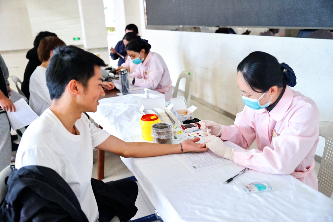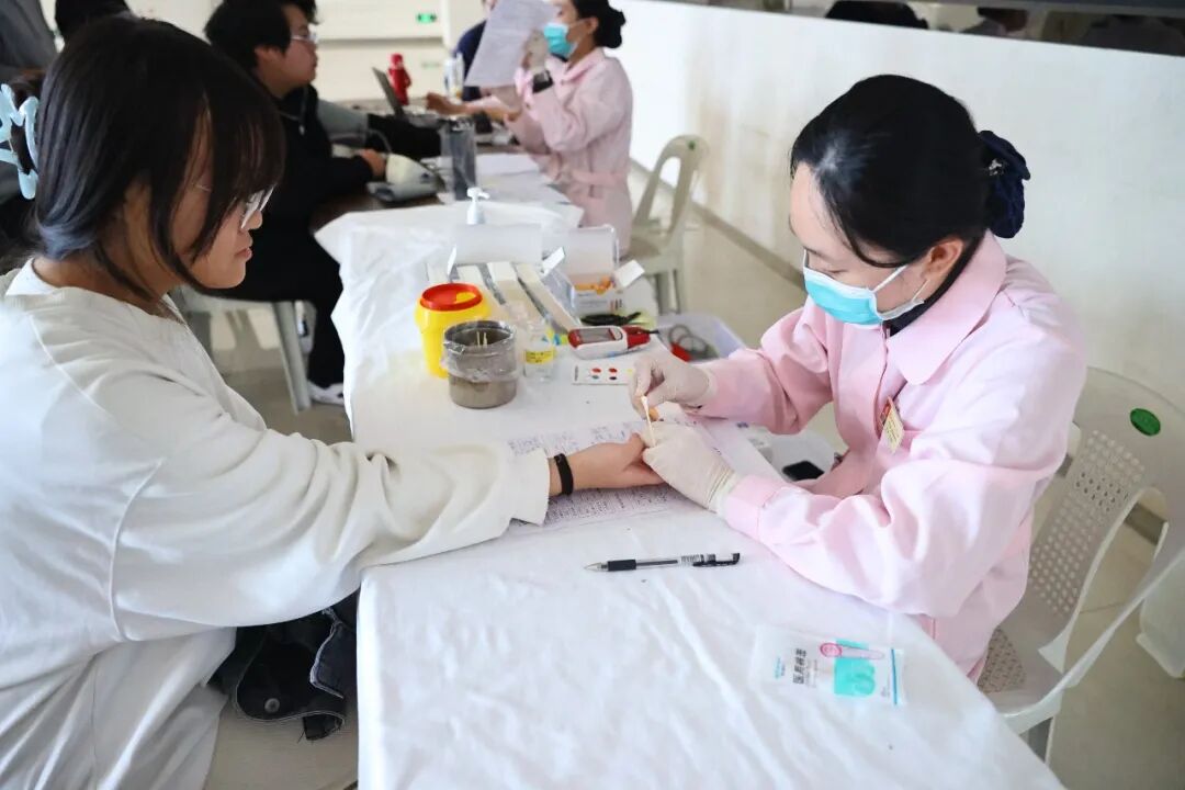 活动现场人头攒动,到处可以感受到同学们高涨的热情。在志愿者的引导下,同学们完成排队、填表、验血、初检、登记、采血等一系列步骤,现场井然有序。