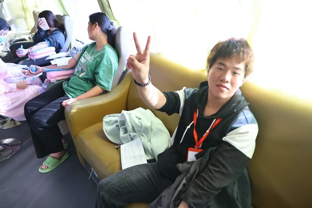 在献血过程中,同学们勇敢地伸出臂膀,奉献鲜血,播种爱心。涓涓细流汇成大海,滴滴热血诠释爱,每一滴热血,都是缓解临床用血紧张的“及时雨”,更是“人类命运共同体”理念的生动实践,让奉献精神在校园深深扎根。