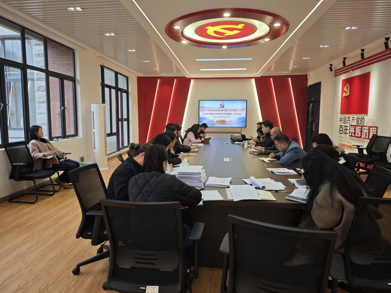 会议集中学习了《关于做好2026年元旦春节期间正风肃纪工作的通知》核心要求,明确了节日期间严禁违规聚餐、收送礼品礼金、公车私用等十条纪律红线,强调要压实各级党组织全面从严治党主体责任,通过专题学习、警示教育等形式筑牢拒腐防变思想防线。同时,传达学习了中共中央政治局关于党风廉政建设和反腐败工作会议、二十届中央纪委五次全会精神,重点学习了习近平总书记关于全面从严治党的重要论述,深刻领会“十五五”时期推进党风廉政建设的重大意义,明确要坚持以严的基调强化正风肃纪,持续深化纠治“四风”,一体推进不敢腐、不能腐、不想腐,加强对“一把手”和领导班子监督,完善权力运行制约机制,为教育事业高质量发展提供坚强保障。