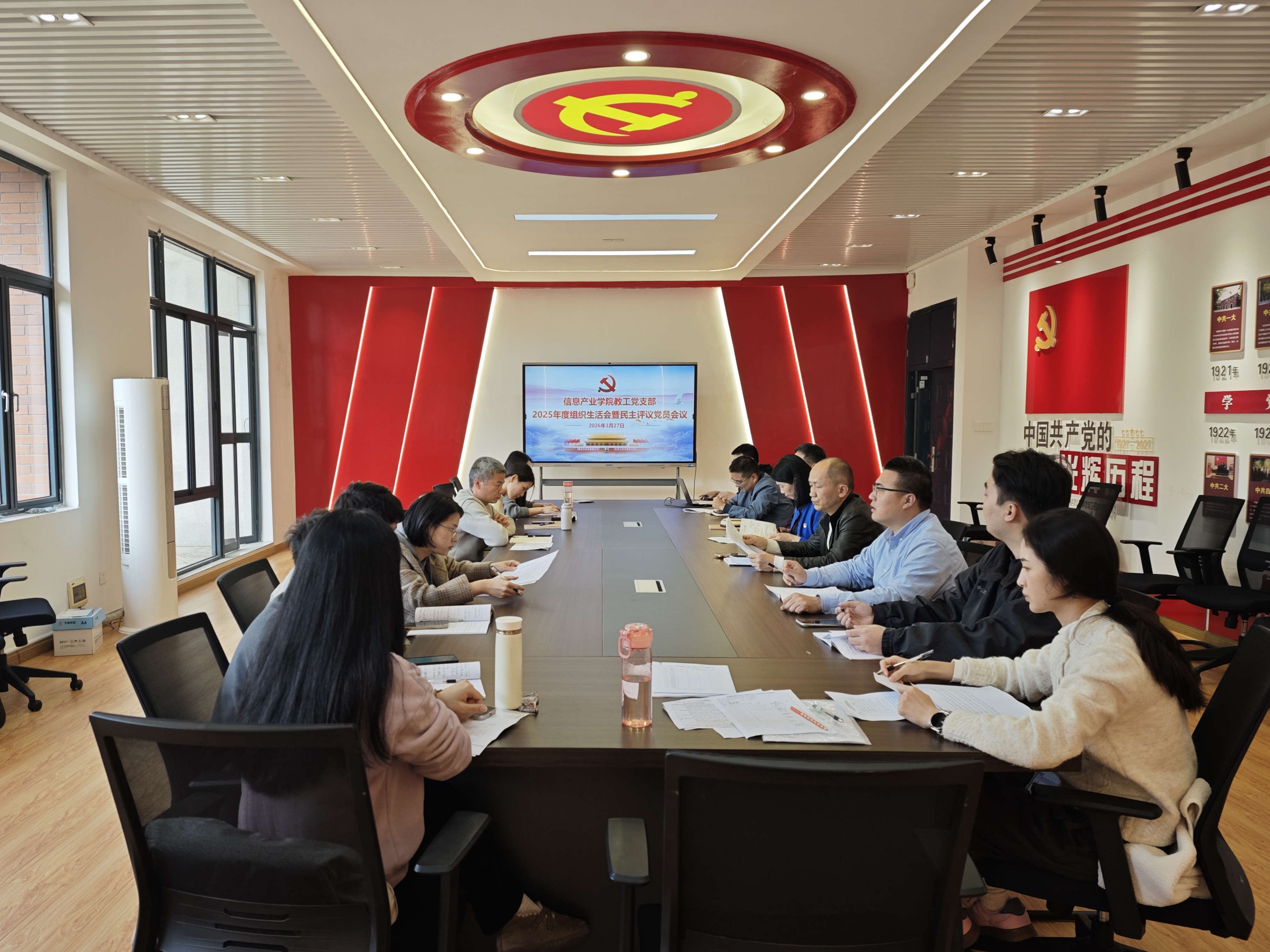 为深入学习贯彻习近平新时代中国特色社会主义思想,全面落实党的二十届四中全会精神,持续推进作风建设常态化长效化,3月27日下午,信息产业学院教工党支部在党建会议室召开2025年度组织生活会暨民主评议党员大会。会议由党支部书记林黄耀主持,湄洲湾职业技术学院计划财务处处长、信息产业学院教工党支部联系人傅赛萍列席指导。